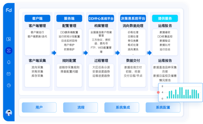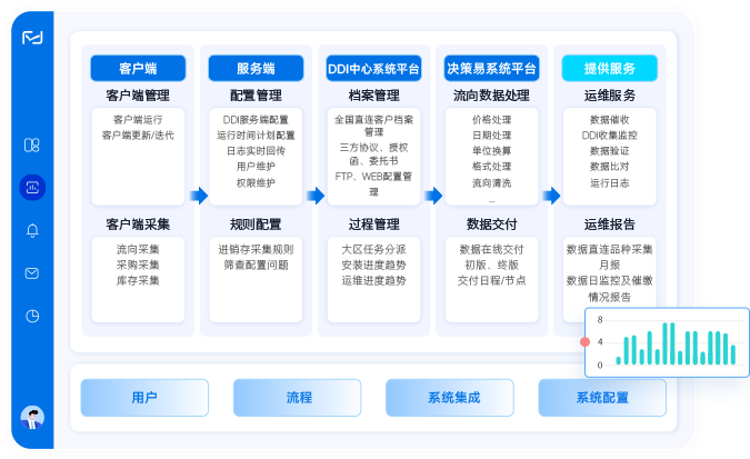 DDI 直连通过客户端、服务端等多平台协同,实现数据采集、处理、交付及运维全流程管理。